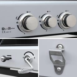- Bevat 3 rooster en 1 gietijzeren plancha