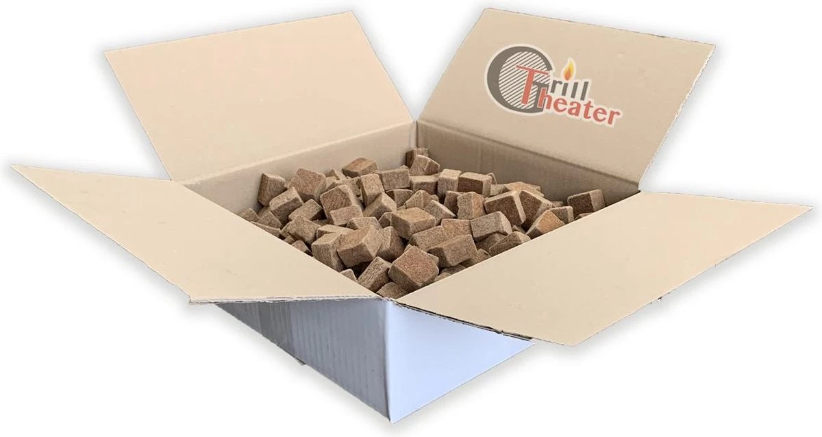 Voordeeldoos milieuvriendelijke bruine aanmaakblokjes van geperst naaldhout. Zeer geschikt voor het aansteken van barbecues, openhaarden en vuurkorven.