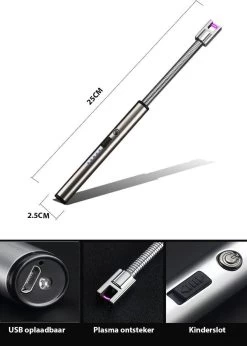 Oplaadbare Lange Elektrische Aansteker Buigbaar – Buigbare Aansteker – Duurzame Plasma Aansteker – Inclusief Cadeauverpakking – BBQ – Kaarsen – Zilver